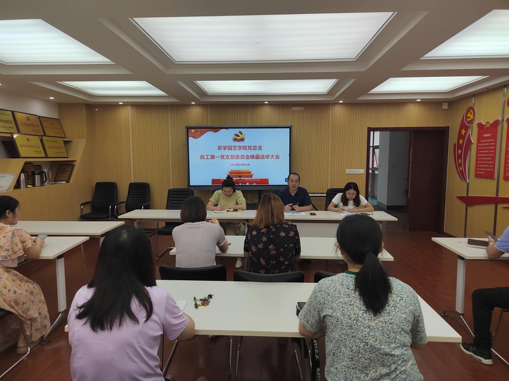 2021年9月1日下午,农学园艺学院第一教职工党支部换届选举大会在研发楼二楼大会议室举行,大会选举产生了新一届支部委员。