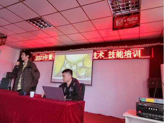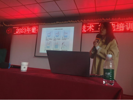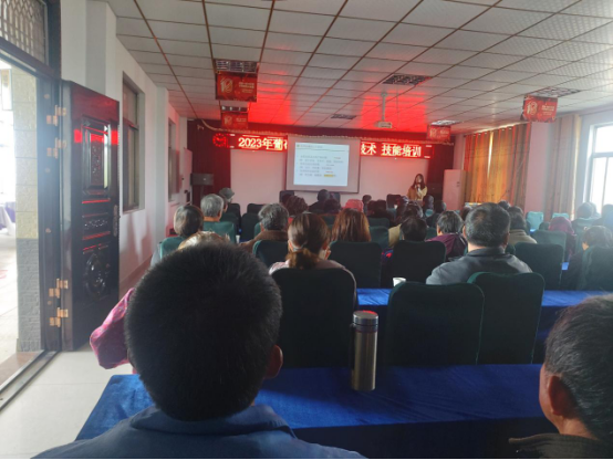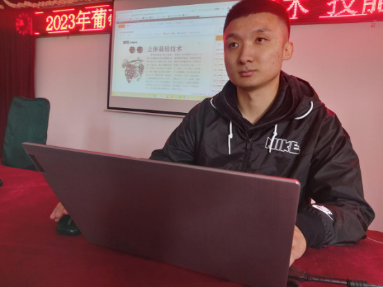 3月29日,正值葡萄伤流与萌芽的关键时期,为解决此时农户遇到的各类种植问题,学院“亚夫科技服务团队”农学园艺分团“葡萄立体种植关键技术创新与应用”首席专家解振强带领团队成员赴茅山镇长城村开展科技培训。团队成员为该村葡萄种植示范户、家庭农场及种植大户70多人开展农作物病虫防治、农药减量增效、新型生物农药使用以及新型葡萄立体种植关键技术的培训。为了解决葡萄生产过程中遇到病虫害的问题,团队倪缘博士作了《有机农药及生物农药现状》的专题培训,倪博士系统讲解了果树类农作物病虫绿色防控、农药减量增效技术措施及葡萄霜霉病防控技术,并现场分析了本地葡萄品种遇到的各类问题及解决办法。为了充分利用葡萄架下空间,实现优质、高产、高效、节能、环保的现代种植方式,团队首席专家解振强推广立体种植模式,帮助该村建立了“葡萄+紫山药”立体种植新技术体系,团队成员周琪博士作了《葡萄立体栽培技术》的专题培训。同时,团队成员彭斌老师针对这一新型模式现场对农户种植过程中遇到的问题进行了解答。培训过程中,各种植户、家庭农场主专注听讲、认真记录,积极与团队成员互动,培训效果良好。