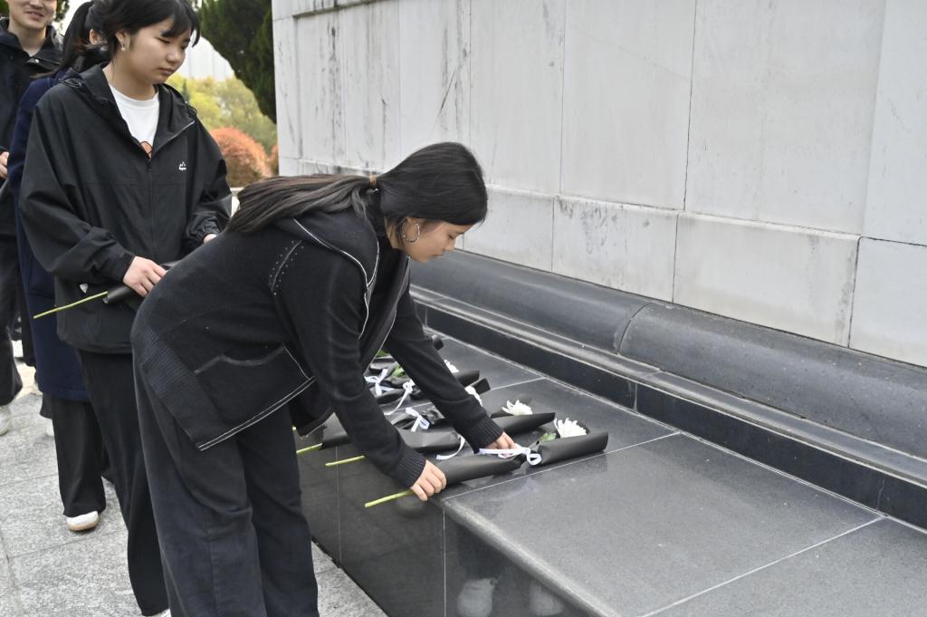 活动现场庄严肃穆,师生们整齐列队,向革命烈士纪念碑敬献鲜花、肃立默哀,深切缅怀为国家和民族英勇献身的烈士们。随后,大家走进烈士纪念馆,观看革命先辈浴血奋战的事迹,每一段故事都让在场同学深受触动。