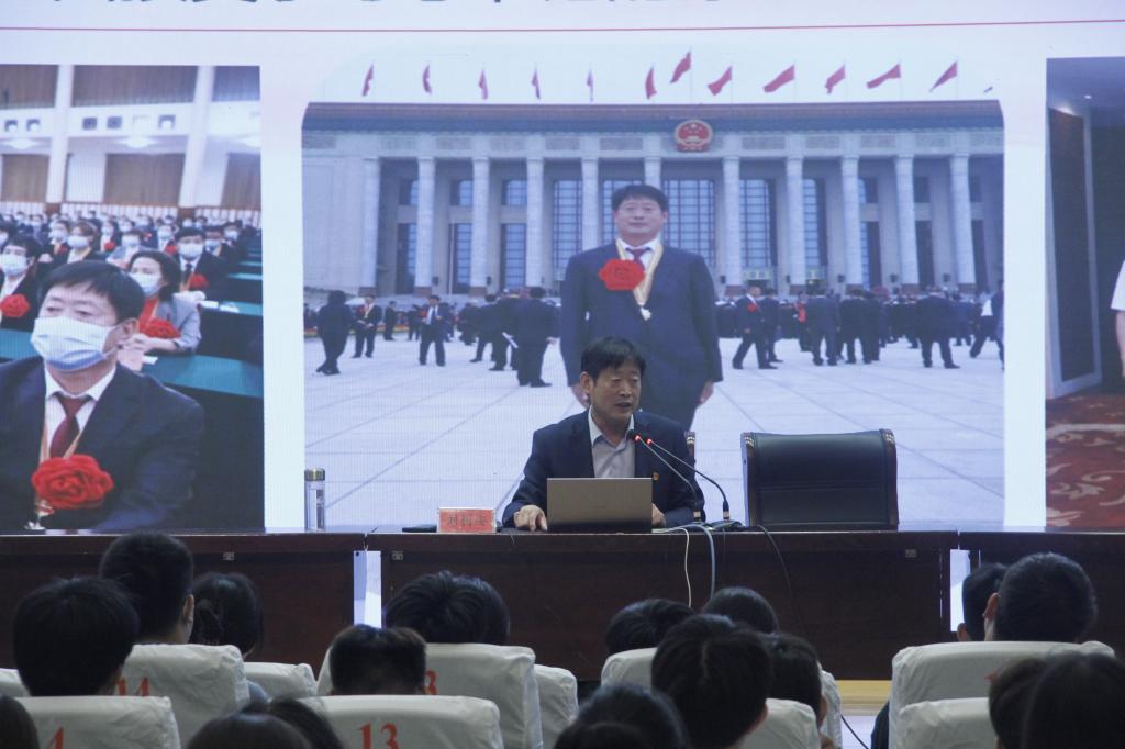 刘树安同志以“喜迎二十大,奋进新征程”作主题报告,首先分享了其全面了解和熟悉党建知识、党的历史的心得体会,随后汇报了唐陵村党委如何把党建工作融入“三农”,引导党员继承和发扬党的光荣传统,增强党员干部的工作责任感和使命感,持续提振干事创业精气神,不断提高为民办事的能力,以及唐陵村十四五期间的规划。活动最后,王全智副书记号召全体同学向先进学习,积极践行当代大学生的社会责任,助力乡村发展,以实际行动迎接党的二十大胜利召开。